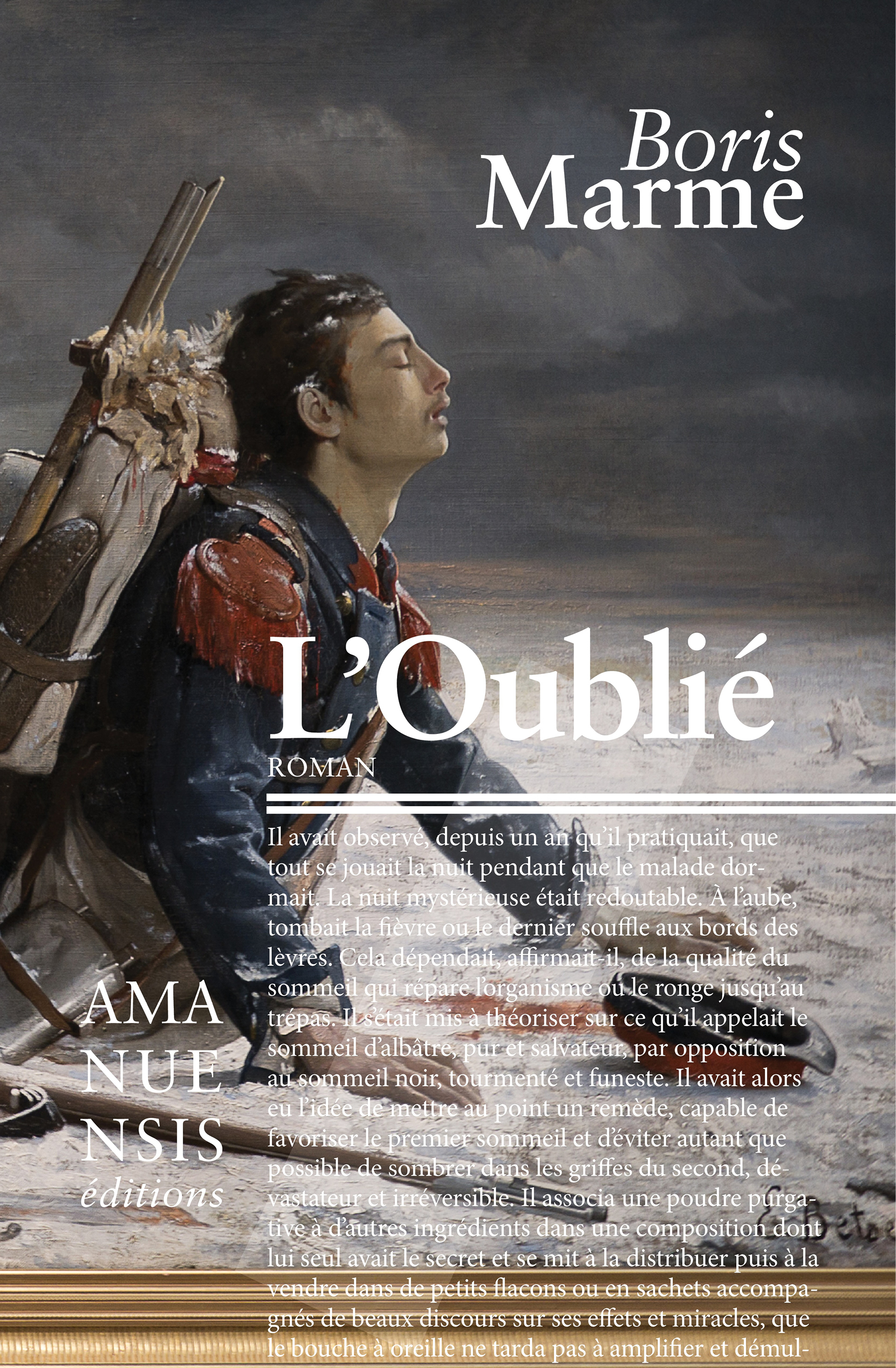 Paris, 1872. Dans une capitale encore marquée par les ruines de la guerre, un jeune chroniqueur découvre au Palais de l’Industrie un tableau troublant : un soldat mourant dans la neige, entre l’agonie et le sursaut. À ses côtés, un couple. L’homme se crispe, disant qu’on lui a volé sa vie. C’est Théodore Larran, sergent grièvement atteint à Saint-Privat, que sa future épouse, Marie-Thérèse, a tiré des morts. Leur histoire entre alors en collision avec l’art. De cette scène naît une enquête intime : deux frères, le peintre et le soldat, et, entre eux, la lutte sourde entre vérité vécue et vérité peinte. De Paris à Bayonne, des salles du Salon aux chambres où l’on veille les malades, le narrateur remonte le fil, années après années, à l’orée d’un autre fracas de l’Histoire. Des salons de la jeune République aux campagnes du Sud-Ouest, Boris Marme compose un roman sur l’art et la filiation, sur ce que l’on efface et ce qui demeure.